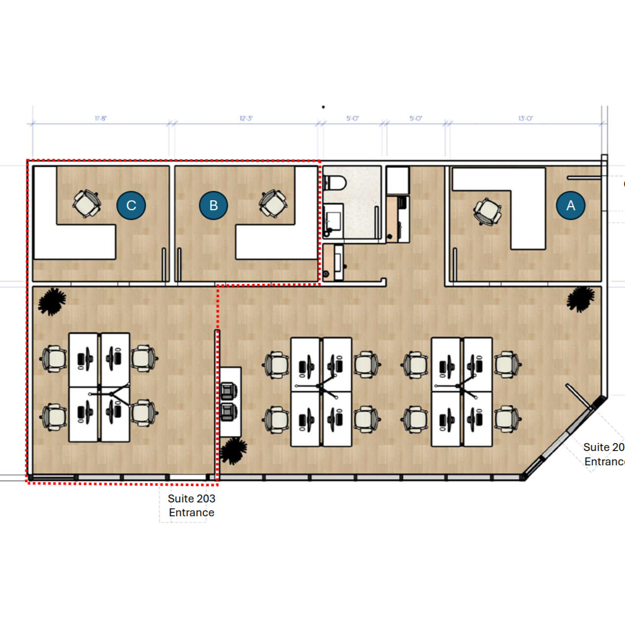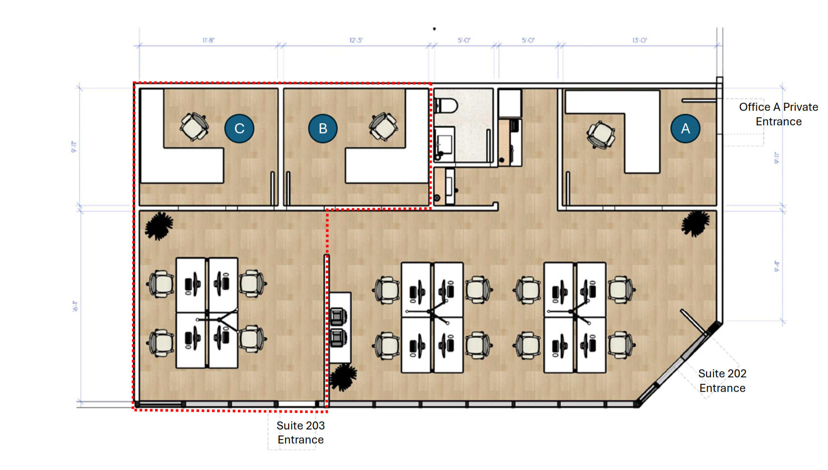 Ideal for professionals who value privacy, focus, and a polished environment.Suite 203 Option