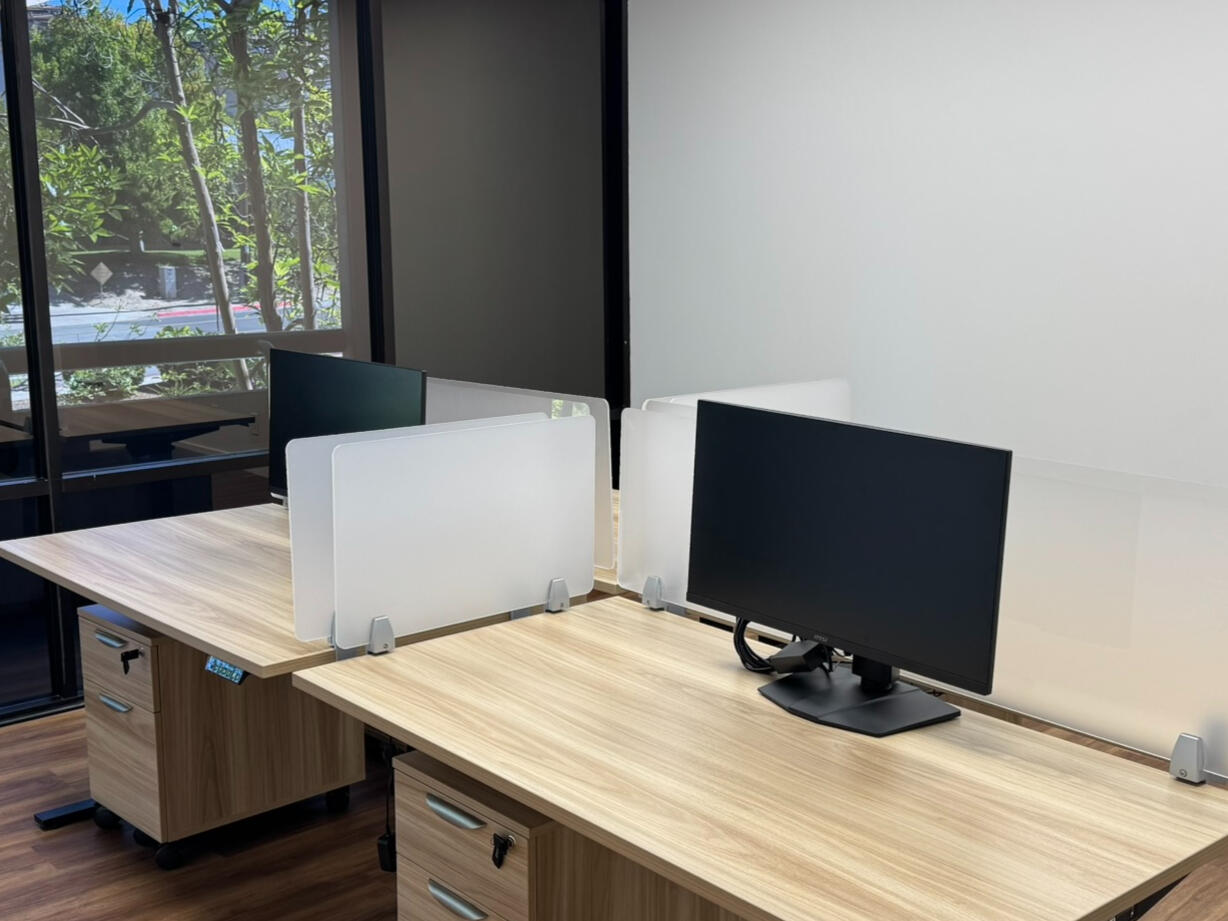 Private outside entrance for direct, secure accessIndependent AC control (mini-split) in each officeCeiling-high walls and frosted glass for full privacy and sound separationErgonomic stand-up desks for a healthier, flexible work setupPlug-and-play workspace – monitors and keyboards available